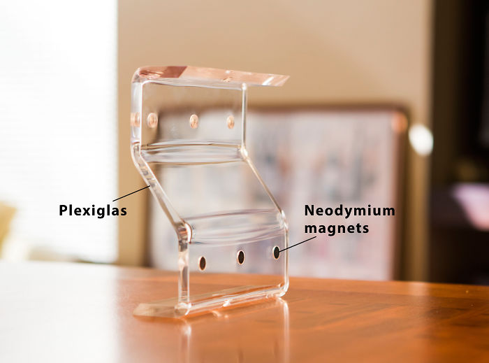 Magnewine is made of Plexiglas with built-in strong Neodymium magnets that keep the pieces together safely. When two pieces come together, they take the shape of a wine glass.