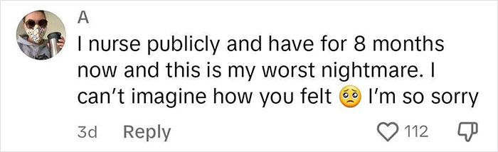 Load More Replies...The person filming could have explained to their child that she is feeding her baby. You should also report the person for putting a video of you up without your consent.