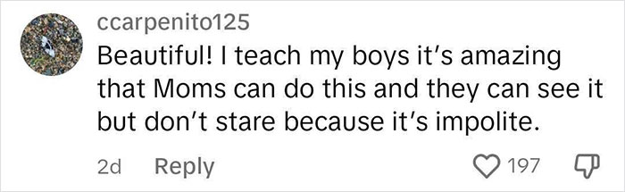 To learn more about this specific situation, we reached out to Izabele Lomax, the mother who shared this TikTok, who was kind enough to have a chat with Bored Panda. Thankfully, Izabele shared that this was the first and only time someone has been offended by her nursing in public. “It never even occurred to me that it could happen!”