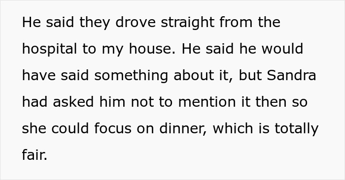 Load More Replies...Seems like it was a bad decision to go straight from the hospital to this person's house for dinner. They took a kid from one stressful situation to another. Give the kid a break and get them their favorite comfort food after spending hours at the hospital.