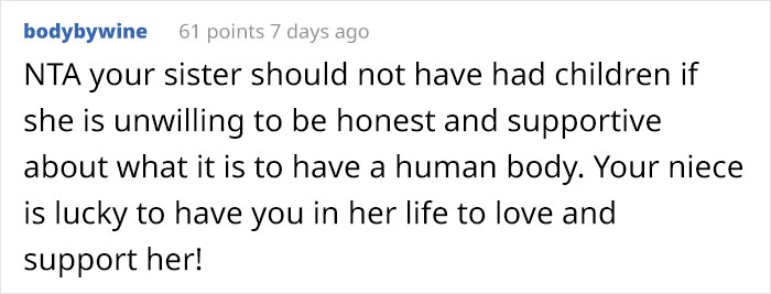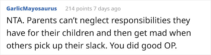 But the people in the comments strongly supported the aunt and were shocked by the mother’s attitude