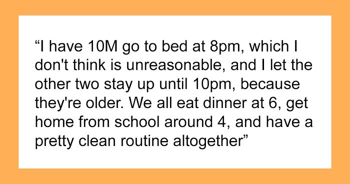 Load More Replies...The person in charge of bedtime picks the bedtime. The fact she didn't even know 10 regularly went to be by 8 proves the point that she's never home to do it.