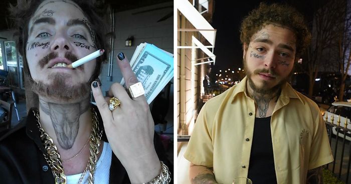 Kari as Post Malone versus the real Post Malone
