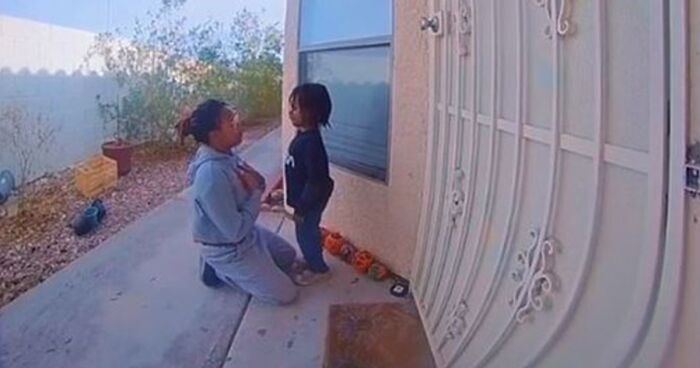 The little boy was experiencing a lot of anger that morning, so Bennett decided to confront it with a little heart-to-heart. Much to her surprise, the moment was caught on Bennett’s door cam—we tend to forget we have those until something out of the ordinary happens literally right at our doorstep.
