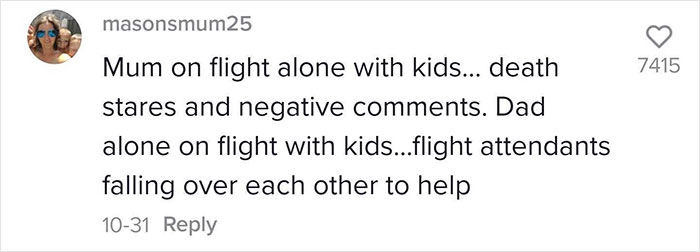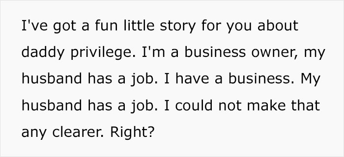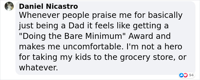 Load More Replies...Maybe you'd say it's a "privilege" but I woudn't. Although it could be an advantage, in most places the fact that good dads are seen as a rarity can be a negative for them. Would you really say that for example say women in IT being infantilized and that everyone would always say that "Wow you're really inspiring that you do that as a woman" as female privilege? This is an advantage but not a privilege, and just like in this case it's not always good, since this is literally the bigotry of low expectations.