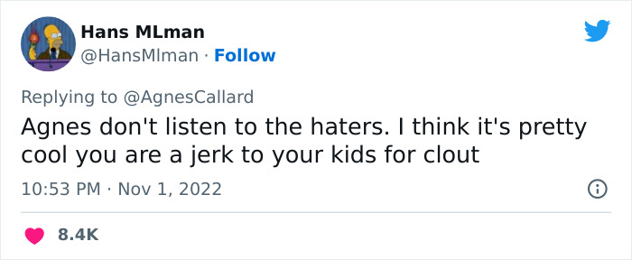 Load More Replies...What an absolute wet, boiled, soggy, gray, hotdog, may all her children vote to put her in the worst nursing home there is