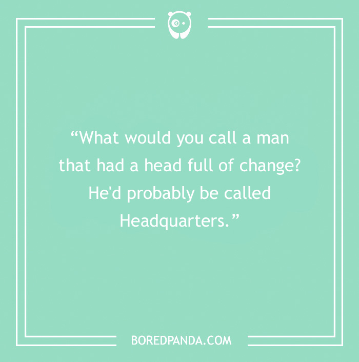What would you call a man that had a head full of change? He'd probably be called Headquarters.