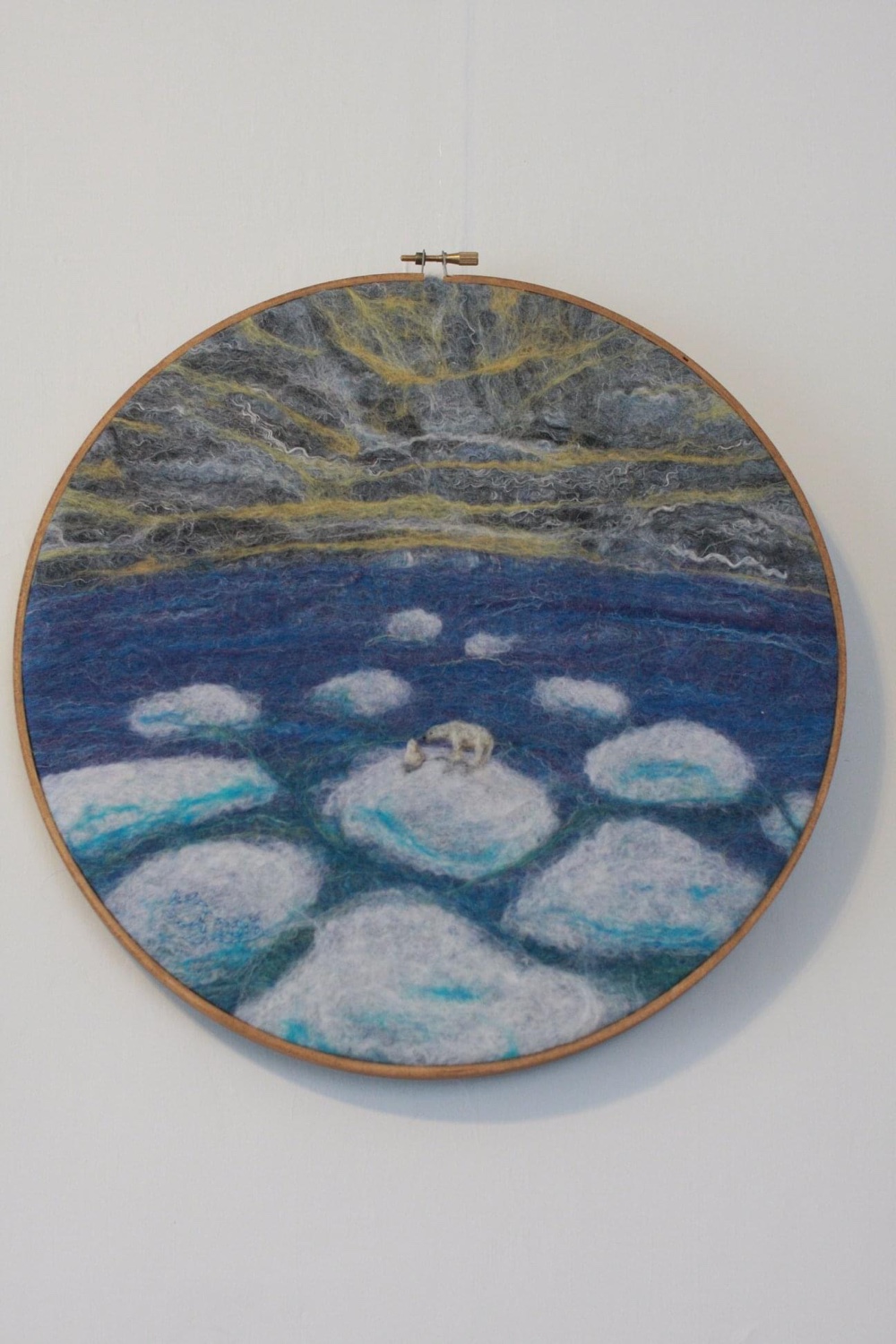 My wet and needle felted picture depicting the desperate situation that Polar Bears are facing. They are such strong animals but yet so vulnerable because of the environment that humans left behind. Please be kind to our environment.