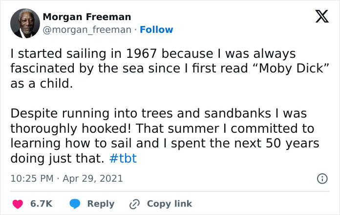 Morgan has been reportedly a true sailor for many years, with many miles behind him, and who, in his own words, has been practicing sailing “as a particularly effective antidote to healing from Hollywood.”