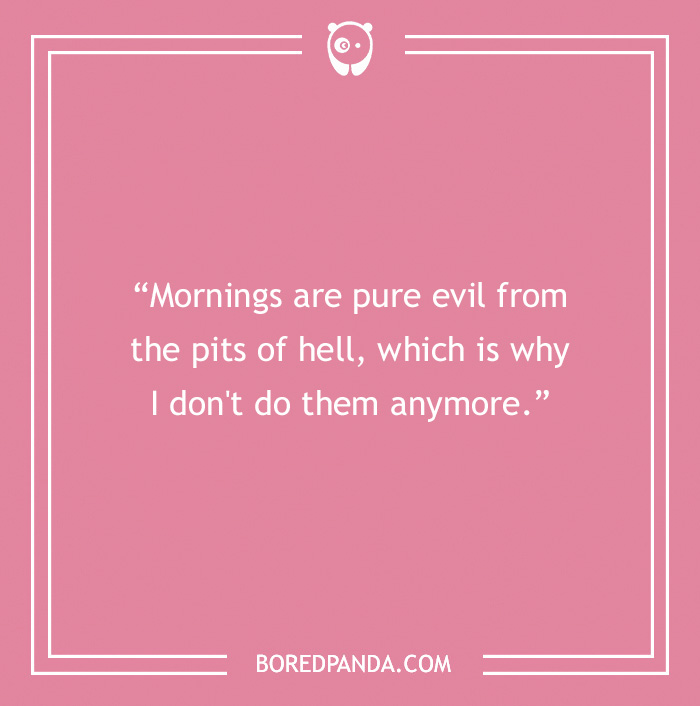 "I'm totally a morning person in the sense that I'm a person and mornings happen and there's apparently nothing I can do about it."