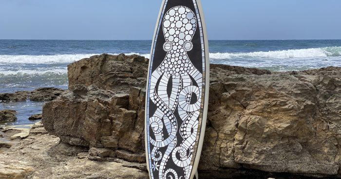 Because I am inspired by the ocean and the art of surfing, it became a natural fit for me to see how I could celebrate both with my love of mosaic art.