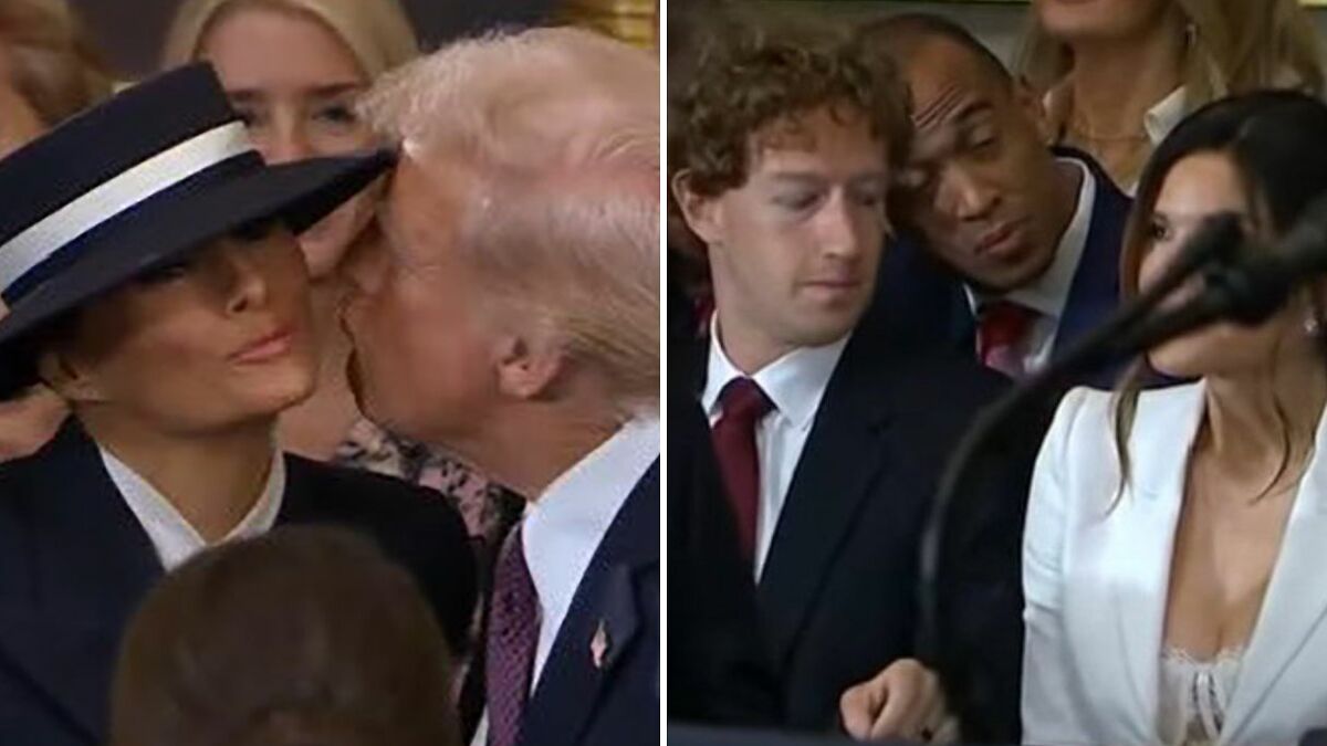 It was Trump vs. Melania’s hat each time the president leaned in for a kiss.