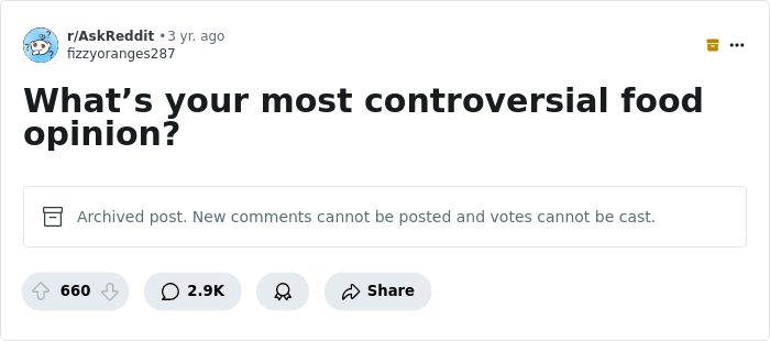 Almost three years ago, this thread appeared on the AskReddit community, the author of which, user u/fizzyoranges287, asked netizens: "What’s your most controversial food opinion?" Interestingly, the number of comments was almost five times higher than the number of upvotes, which can only mean one thing: a heated debate.