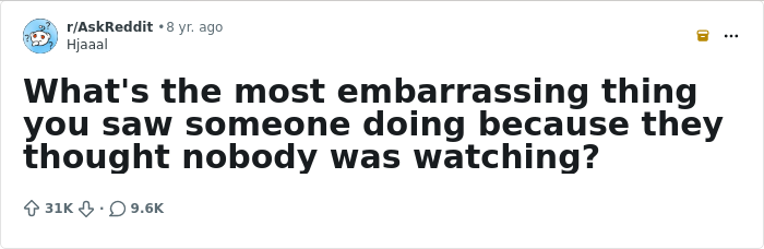 If you don’t really want to imagine that or comb through your memories for instances like that, you can just take a look at today’s list. We filled it with stories of people witnessing someone else doing something embarrassing without thinking they had viewers.