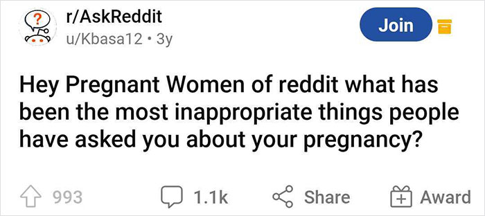 You see, the bigger the belly bump gets, the more insulting questions, body commentary, and unsolicited advice come their way. So user Kbasa12 decided to reach out to the women of Ask Reddit and find out about the most inappropriate things people have ever asked about their pregnancy.