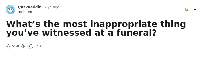 However, not everyone gets it. Recently, we came across a couple of Reddit threads where people shared all the inappropriate things they've witnessed at funerals. From taking pictures with silly filters to playing obnoxious music, here are some of the most memorable stories. One person's solemn tribute is another person's "me time," it seems.