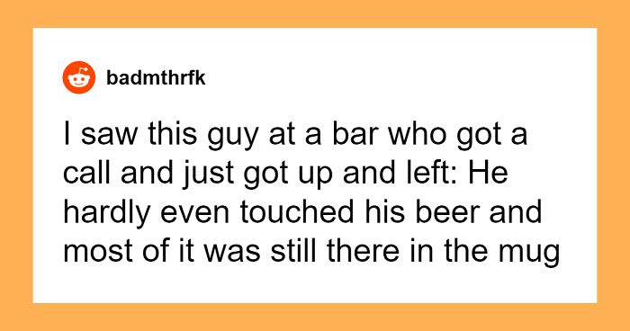 I saw this guy at a bar who got a call and just got up and left: He hardly even touched his beer and most of it was still there in the mug.
