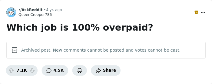 This might be a hot take but my cousin works in coding and tech and one time told me his job is "100% overpaid." What he does really isn't difficult coding it's just in high demand, but he told me that what he does for the time and energy is probably overpaid.