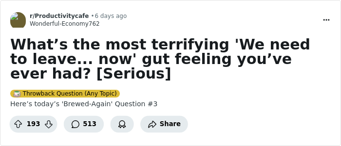 The quote highlights the importance of anxiety as a warning during a potentially dangerous situation. That trepidation likely triggered these people to act on the unpleasant feelings they felt in the pit of their stomachs as they shared their personal stories in this Reddit thread.