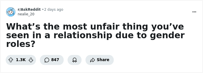 Whether it be at the workplace or in a relationship, it keeps creating an unfair environment. If you want proof, here are stories that netizens shared about how they witnessed unfairness in relationships due to gender roles. Just scroll down to check them out, and you will understand how this issue persists!