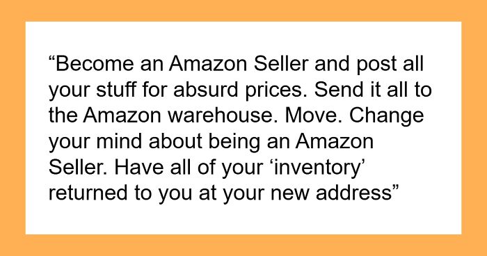 Become an Amazon Seller and post all your stuff for absurd prices. Send it all to the Amazon warehouse. Move. Change your mind about being an Amazon Seller. Have all of your “inventory” returned to you at your new address.