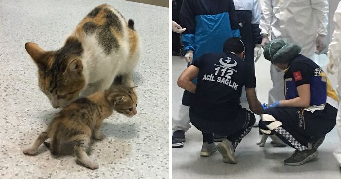 Recently, in Istanbul, a stray cat mom took her baby kitten to the ER