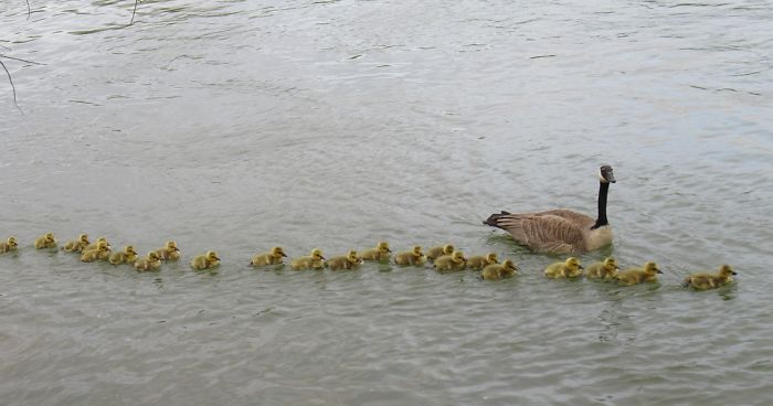 The man realized that this supermom goose wasn’t taking care of her own babies—she was actually looking after goslings from many different families. In fact, this phenomenon is called gang brood.