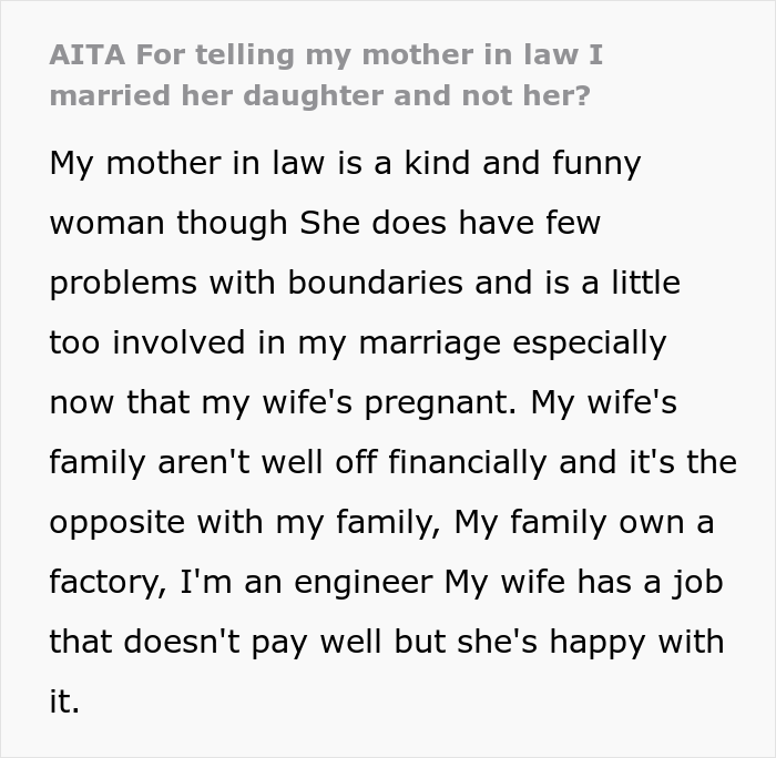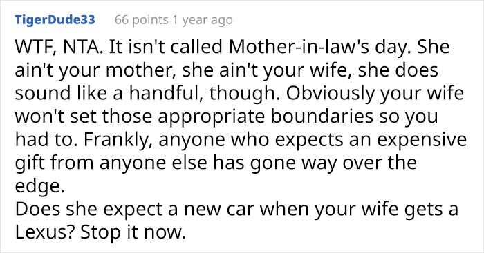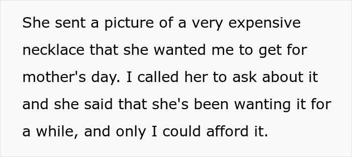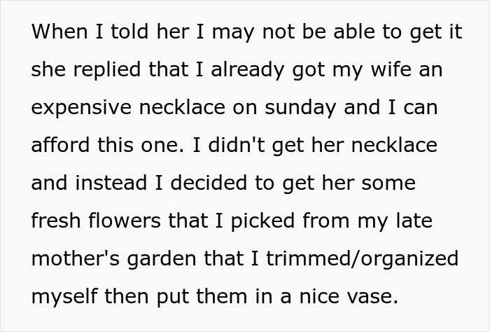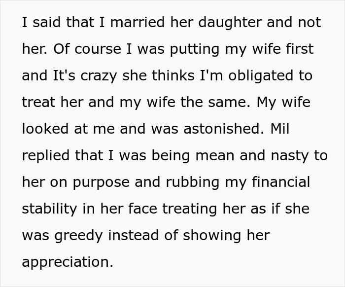 Load More Replies...The wife should have told her mom, get you a man that can provide all the things you want, but my husband is mine, so paws off. To be real this sort of thing happens more than one might think. In my case it was his mother that wanted everything he gave me. It's an awful experience.