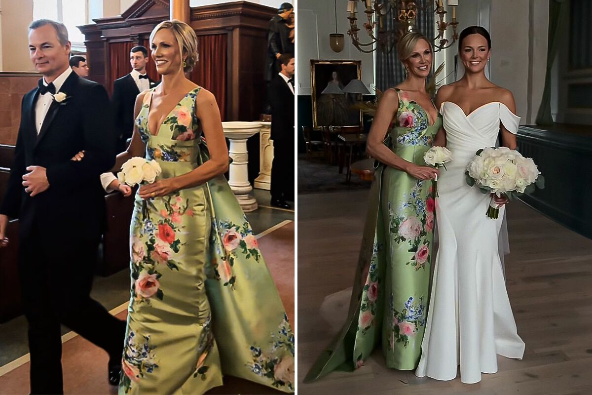 A green floral gown worn by Lori DeWitt, the mother of bride Amanda DeWitt Leblanc, sparked a flurry of conversations online