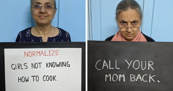 InterviewThe world really needs more heartwarming people like Poonam Sapra and her son Pranav. Especially in 2020. Together, the mother-son duo from India runs the ‘Mother With Sign’ Instagram page. They post photos of Poonam holding up signs with wholesome, relatable, and humorous motherly advice for living a good, healthy, and happy life.