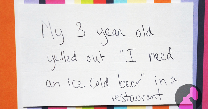 The confessions were submitted anonymously by guests to the Pump & Dump comedy show hosted by Shayna Ferm and her coach MC Doula. For more hilarious humor about kids and parenting, check out some of the creepiest or most hilariously honest things kids have ever said or written.
