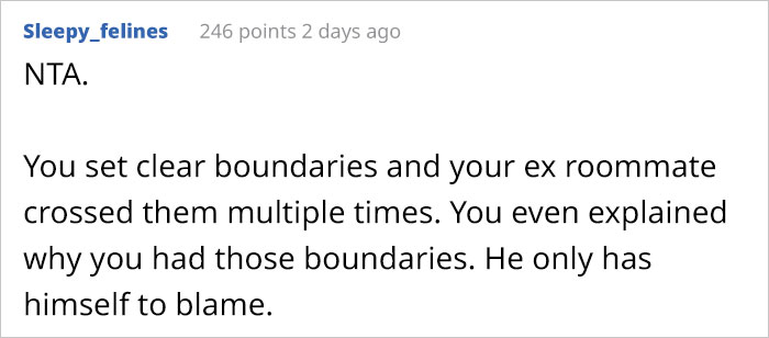 All the opinions shared in the comments were valid and reasoned, so the thing that would let us decide what our stance is trying to put ourselves in the OP’s and the roommate’s shoes. Who do you side with in this situation and do you think this could have been handled better? Let us know in the comments!