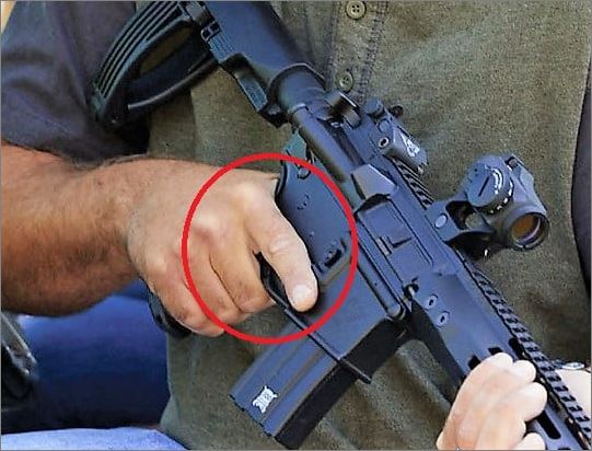 It's called trigger discipline. Basically, you only put your index finger on the trigger when you want to fire. As long as you don't, you keep it slightly above, on the side.