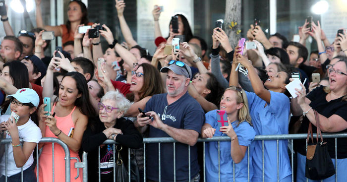 Load More Replies...By the look and smiles on people's faces they all seem to be enjoying that moment of life while also getting the enjoyment of taking pictures and preserving the moment. Those pictures can also be enjoyed later and the happy experience can be shared with friends and other people who were not there. (Hey, I am a photographer and enjoy living and keeping memories of special moments of life .) Who knows. The nice lady with glasses is perhaps by with her son next to her, who is focusing on the phone, reviewing the photos. In my view there's nothing alienating about taking pictures of movie stars.