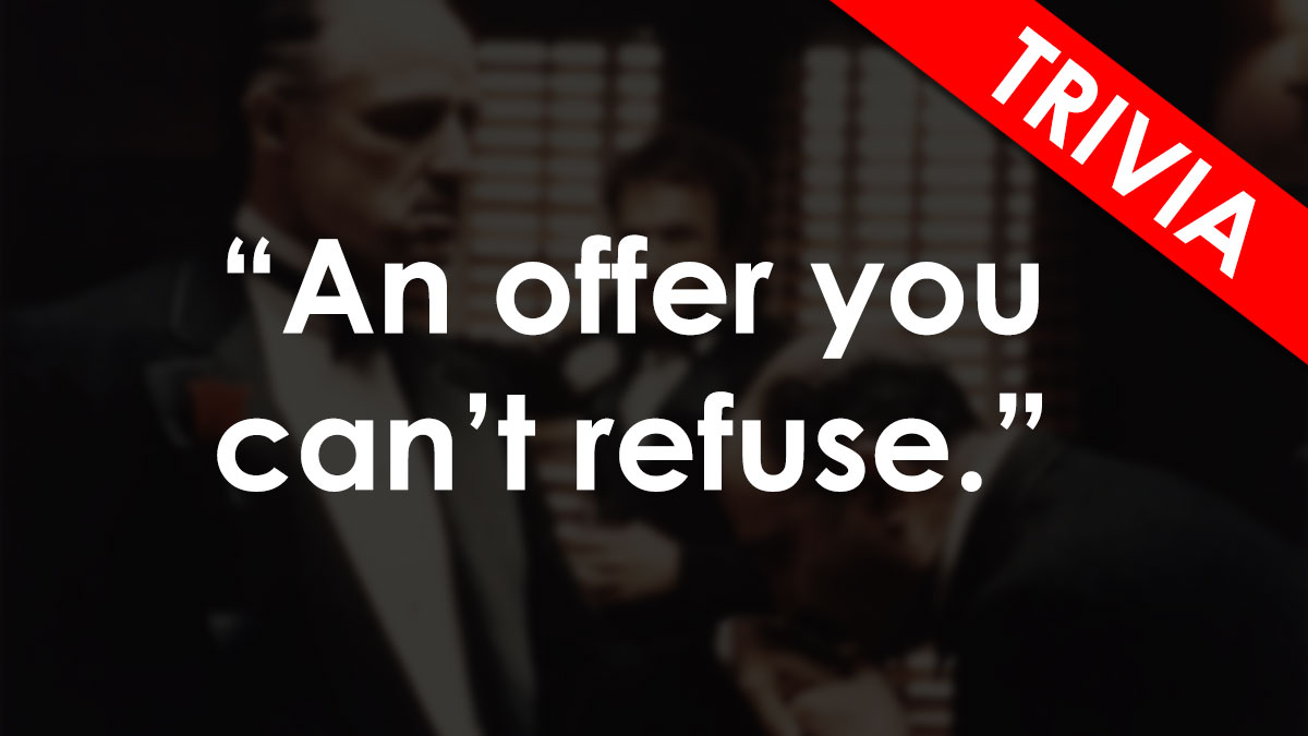 Famous movie tagline An offer you cant refuse displayed over a classic film scene for film trivia and quotes.