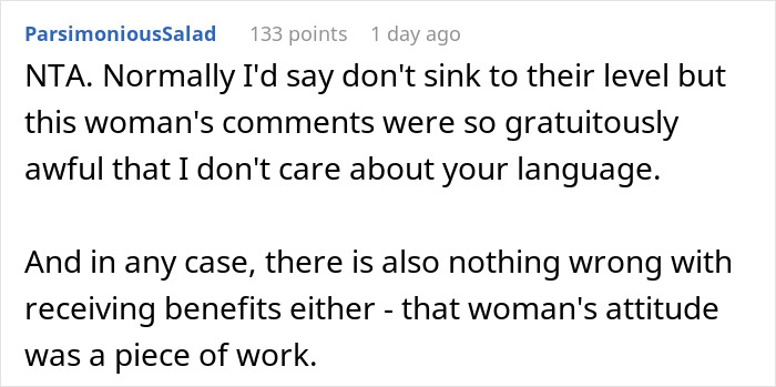 The poster took it online to ask whether she’s a jerk for cussing out a mom new to the neighborhood for calling her a “scrounger”
