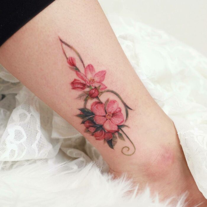 Realistic Red Flowers Musical Note Tattoo