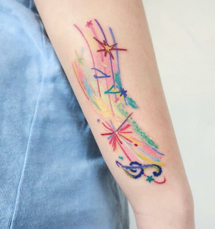 Colorful Music Forearm Tattoo
