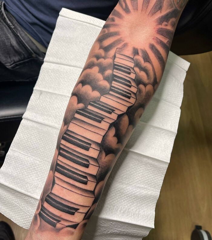 Piano Stairs To Heaven Arm Tattoo