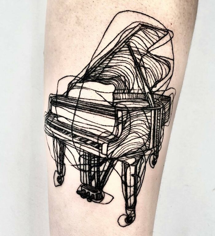 Black Line Piano Tattoo
