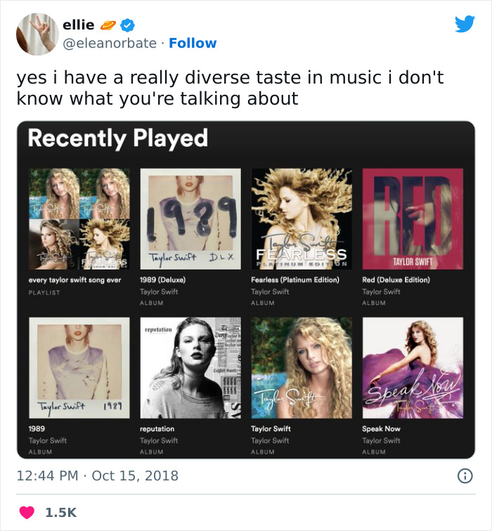 Literally all the artists in my Spotify wrapped were female, and Taylor swift topped them all