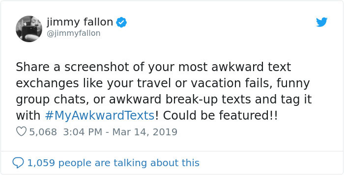 To prove this, Late Night host Jimmy Fallon took to Twitter for another one of his famous challenges, asking people to share a screenshot of their most awkward text message fails with the hashtag #MyAwkwardTexts for the chance to be featured on his show. Scroll down below to see all the hilariously funny text message responses he received, and don't forget to upvote your favs!