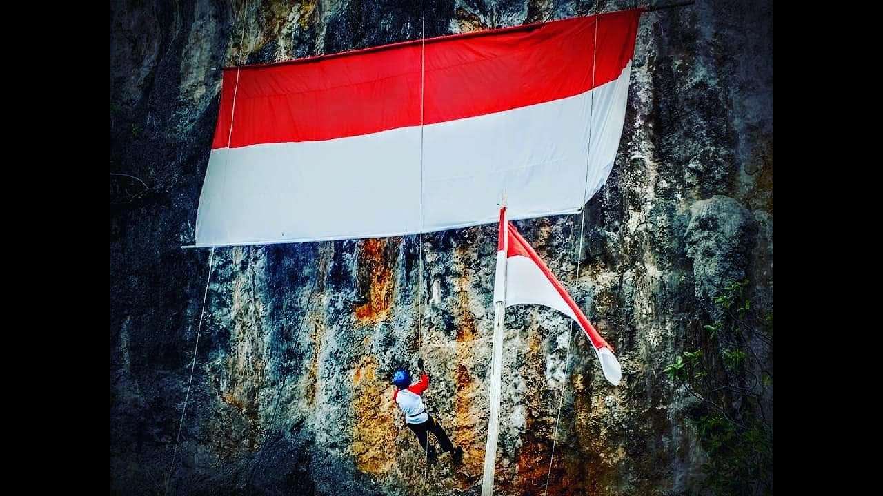 On August 17, Indonesia celebrated its Independence Day. And on the same day, my brother with his wife and friend climb down a cliff in my dad’s village (Arguni) to display the Indonesian flag.