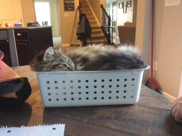 This is my youngest cat, kobayashi maru (from Star Trek) she likes sleeping in baskets, apparently…