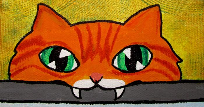I grew up with cats and learned early about the sly and despite all trouble loveful character of cats. As a tribute, I paint all that worst case scenarios one can go through having loving cats. Maybe it would be a good idea to avoid overworking, taking a step back and have some break… and pet your cat.