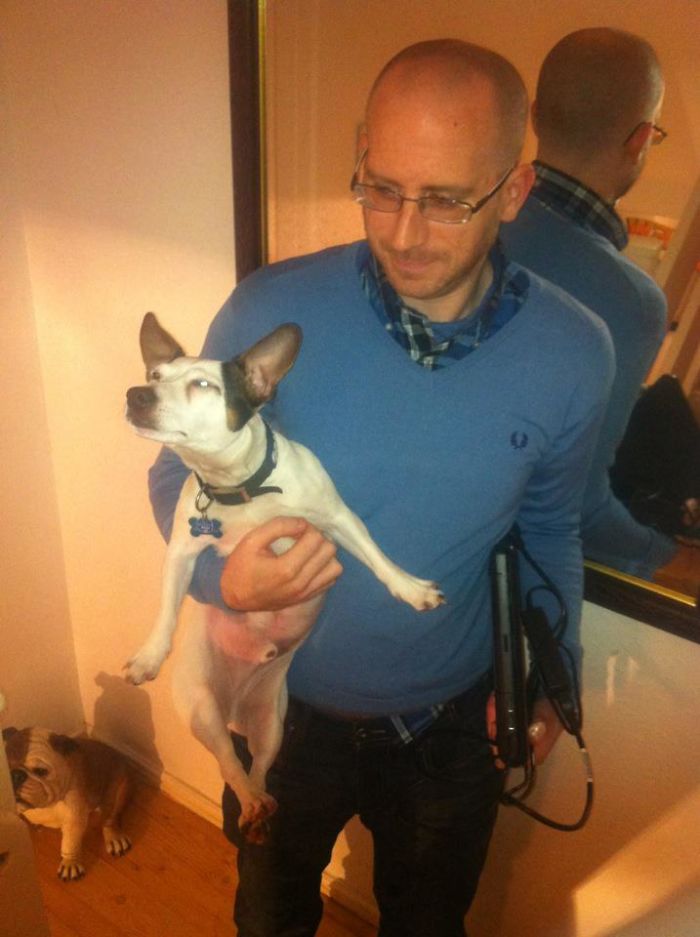 This is from a few years ago. I was taking Nacho to his room for bedtime and the upstairs cat (Walter) that he doesn’t get on with stuck his head through the bannister.