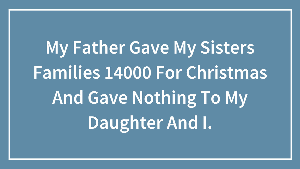 My dad gave my sisters family 14000 for Christmas and gave my daughter and i nothing. I was always the black sheep scape goat of the family. I moved to Florida to get away from this year's ago. I married and had a child. I was a stay at home mom due to my daughter asthma and covid. I stuck out a marriage until I was r u