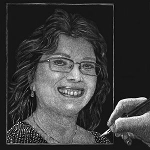My work is created using a knife tip to make scratches. Scratchboard is a subtractive medium. I scratch through the black India layer into the white kaolin clay beneath to create a black and white image. The more I scratch the lighter that area will become, allowing me to create a range of tones. Some of the tools I use are an X-Acto knife with a scalpel blade (makes an extremely fine line), sandpaper, tattoo needles and fiberglass brushes. Because these tools leave quite fine marks, the medium is great for realistic details. Multiple layers of scratching in an area creates a lighter, brighter white, but care must be taken not to cut too deep as this would affect further layering to be accomplished. After I scratch out the image in black and white, I can color in the scratches with transparent colored inks using a brush. Because I use transparent colors, the black scratched areas still show through. A scratching layer must be done after each layer of color to effectively create tonal values in the colored areas. Adding color adds twice the amount of work and time. I love the amount of detail that can be obtained with this medium. Literally everything you see has been scratched out by hand. Once completely dry, I apply several layers of varnish for a nice looking finish that doesn’t scratch as easily as it does prior to. Small pieces take me about 2 weeks to finish; large works can take several months (the only drawback to this new fine art medium).