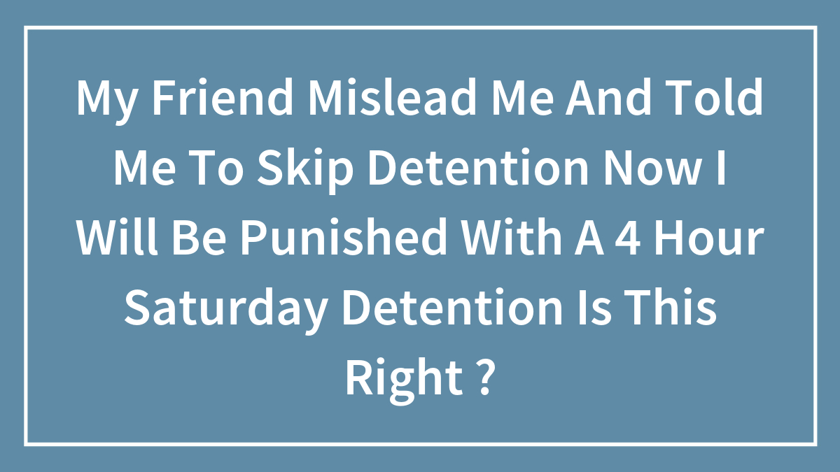 My Friend Mislead Me And Told Me To Skip Detention Now I Will Be Punished With A 4 Hour Saturday Detention Is This Right ?