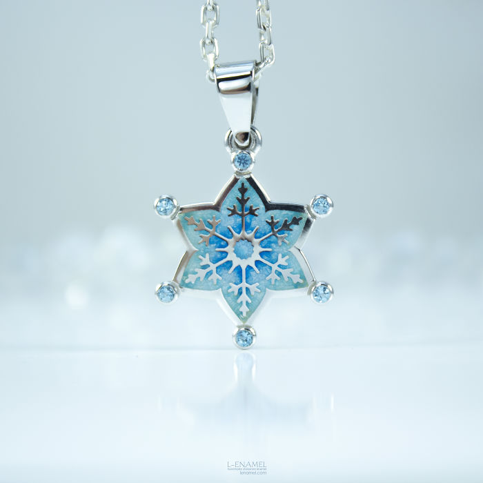 Silver snowflake is made by my girlfriend with an ancient technique for decorating precious metal objects, using hot enamel.